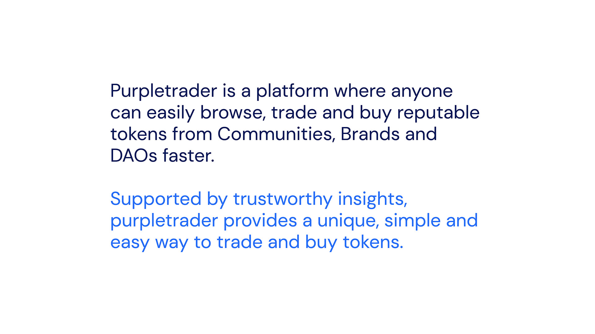 Branding design for Purpletrader; A platform where anyone can easily browse, trade and buy reputable tokens from Communities, Brands and DAOs faster. Supported by trustworthy insights, purpletrader provides a unique, simple and easy way to trade and buy tokens.